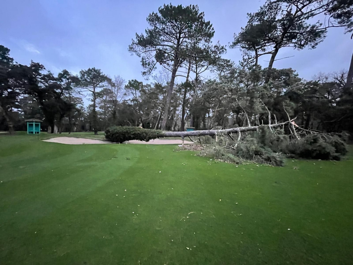De nombreuses branches et des arbres sont tombés cette nuit sur le parcours. L'équipe terrain fait tout son possible pour nettoyer et sécuriser les zones de jeu.