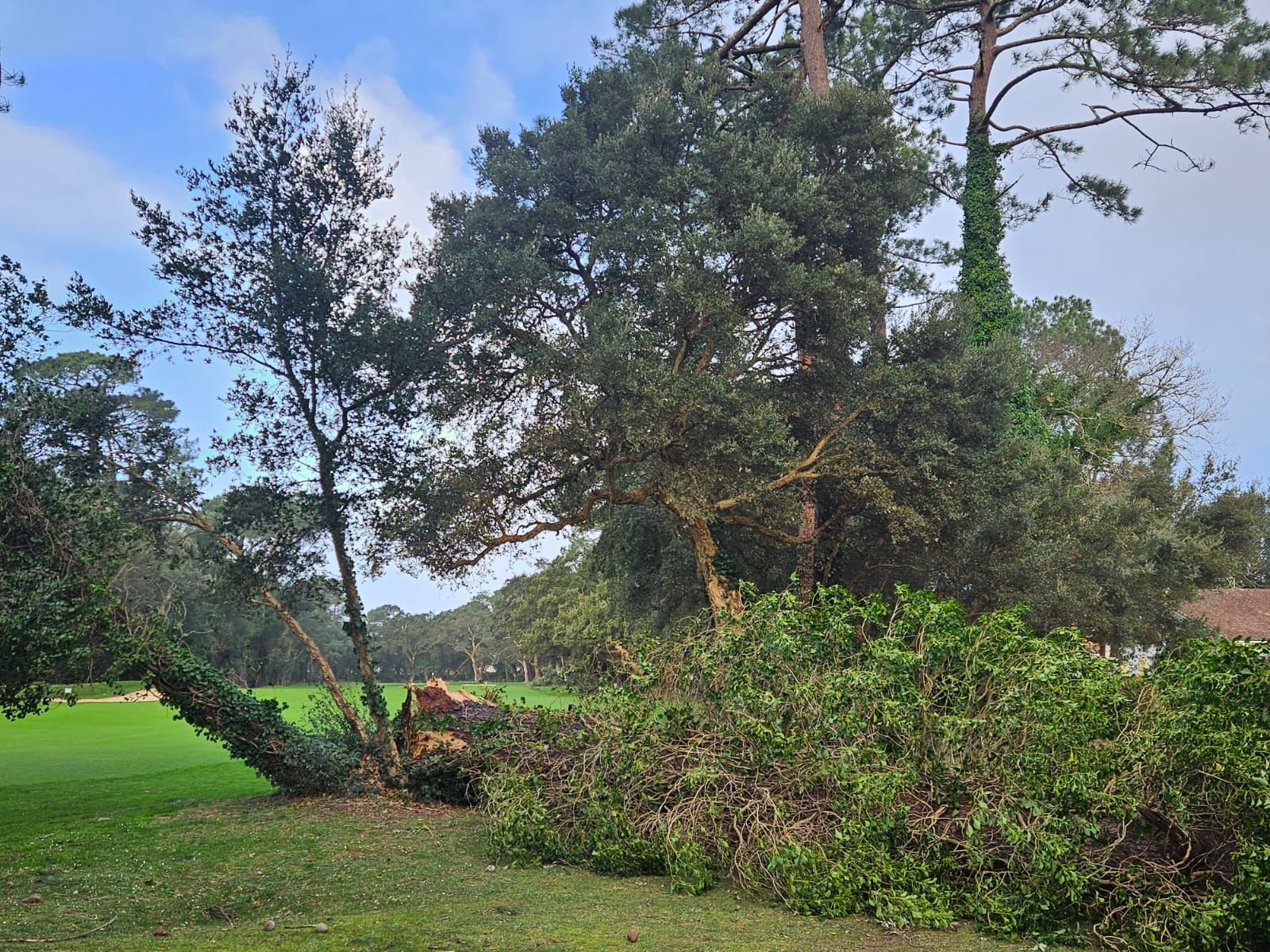 Demain, vendredi 13 février, le parcours ouvrira à 12h afin de permettre aux jardiniers de poursuivre le nettoyage des zones de jeu et la mise en sécurité du site. Toutes les équipes du golf étaient mobilisées aujourd'hui pour débiter et évacuer la douzaine de grands arbres tombés dans la nuit. Les souffleurs ont également tourné à plein régime pour enlever les nombreuses feuilles et branches qui recouvrent le gazon. Un travail considérable mais nous mettons tout en oeuvre pour que vous puissiez jouer le plus rapidement possible.