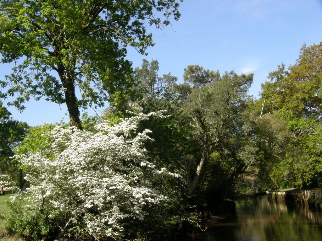 Crataegus Monogyna, l’Aubépine. C’est une plante rosacée qui fleurit au printemps. Ses nombreuses petites fleurs blanches sont très odorantes et souvent utilisées sous forme de tisane en pharmacie, notamment pour réguler la tension artérielle. Ses fruits en forme de bouton appelés aubépines sont très appréciés des oiseaux et des rongeurs.