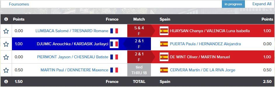 Chaque équipe nationale est composée de 4 filles et 4 garçons, benjamins et minimes. Ils s'affrontent en match play, foursomes samedi 1er novembre matin et après-midi, simples dimanche matin 2 novembre.