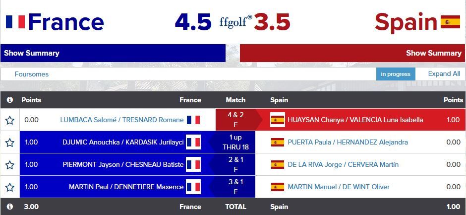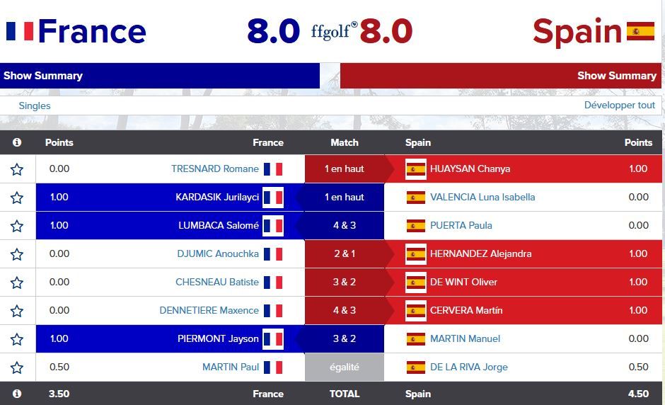 Le golf d'Hossegor accueille ce week-end le match France / Espagne U16.