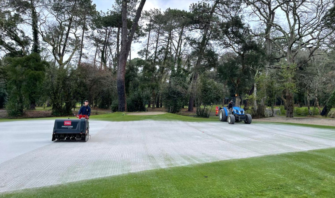 Le carottage des surfaces de jeu est indispensable dans le processus d'entretien du parcours. En effet, le passage des tondeuses et le piétinement des golfeurs provoquent un compactage du sol qui contrarie la perméabilité et les échanges air/eau entre la surface et les racines. Après la forte affluence estivale, il est temps de faire respirer nos greens !